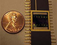 La Jolla CA (SPX) Mar 26, 2008 The invention and operation of this penny-sized electronic sensor, capable of sniffing out hydrogen peroxide vapor in the parts-per-billion range from peroxide-based explosives, such as those used in the 2005 bombing of the London transit system, is detailed in a paper in this week's issue of the Journal of the American Chemical Society. In addition to detecting explosives, UC San Diego scientists say the sensor could have widespread applications in improving the health of industrial workers by providing a new tool to inexpensively monitor the toxic hydrogen peroxide vapors from bleached pulp and other products to which factory workers are exposed. "The detection capability of this tiny electronic sensor is comparable to current instruments, which are large, bulky and cost thousands of dollars each," said William Trogler, a professor of chemistry and biochemistry at UCSD and one of its inventors. "If this device were mass produced, it's not inconceivable that it could be made for less than a dollar." The device was invented by a team led by Trogler; Andrew Kummel, a professor of chemistry and biochemistry; and Ivan Schuller, a professor of physics. Much of the work was done by UCSD chemistry and physics graduate students Forest Bohrer, Corneliu Colesniuc and Jeongwon Park. The sensor works by monitoring the variability of electrical conductivity through thin films of "metal phthalocyanines." When exposed to most oxidizing agents, such as chlorine, these metal films show an increase in electrical current, while reducing agents have the opposite effect-a decrease of electrical current. But when exposed to hydrogen peroxide, an oxidant, the metal phthalocyanine films behave differently depending on the type of metal used. Films made of cobalt phthalocyanine show decreases in current, while those made from copper or nickel show increases in current. The UCSD team used this unusual trait to build their sensor. It is composed of thin films of both cobalt phthalocyanine and copper phthalocyanine to display a unique signature whenever tiny amounts of hydrogen peroxide are present. Bombs constructed with hydrogen peroxide killed more than 50 people and injured 700 more on two London subway trains and a transit bus during rush hour on July 7, 2005. More than 1,500 pounds of a hydrogen peroxide-based mixture was discovered after an alleged bomb plot in Germany that resulted in the widely publicized arrest last September of three people. Trogler said that because the team's sensor is so little affected by water vapor, it can be used in industrial and other "real-life applications." The university has applied for a patent on the invention, which has not yet been licensed. Community Email This Article Comment On This Article Related Links The Long War - Doctrine and Application