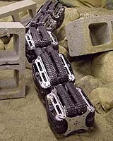 Moffett Field CA (SPX) Mar 29, 2005 A virtually unstoppable "snakebot" has been developed by a University of Michigan team, resembling a high-tech slinky as it climbs pipes and stairs, rolls over rough terrain and spans wide gaps to reach the other side. The 26-pound robot developed at the U-M College of Engineering is called OmniTread. It moves by rolling, log-style, or by lifting its head or tail, inchworm-like, and muscling itself forward. The robot's unique tread design prevents it from stalling on rough ground, said Research Professor Johann Borenstein, the head of the mobile robotics lab at U-M. The snake-shaped serpentine robot is propelled along by moving treads that cover 80 percent of its body. These treads prevent the snakebot from stalling or becoming stuck on rough terrain because, similar to a tire touching a road, the treads propel the robot forward like a tire touching a road. Historically, scientists haven't had much success with wheeled and tracked robots on rough terrain because they constantly stall. A human operator controls the snakebot via a joystick and umbilical cord, which also provides electric power, which sends commands to specially designed software. A smaller, but more self-contained version that is now under development will carry on-board power for one hour of tetherless operation. The OmniTread is divided into five box-shaped segments connected through the middle by a long drive shaft spine that drives the tracks of all segments. Bellows in the joints connecting the sections inflate or deflate to make the robot turn or lift the segments. The bellows provide enough torque for the OmniTread to lift the two front or rear segments to climb objects. In one test, the OmniTread climbed an 18-inch curb, which is over more than twice its height. It also crossed a 66-centimeter trench, which is half its length. In another test, it inched up a pipe by pushing against opposite walls. "A snakebot is not as good at some jobs as other robots, but you get a lot more robot for the weight and the money," said Gary Haith, lead "snakebot" engineer at NASA's Ames Research Center located in California's Silicon Valley. "The problem is it's hard to tell the snakebot what to do. It is a complex robot that must operate independently, possibly far from Earth. Work on our second snakebot is aimed at making it capable of independent behavior." Robotic serpents can "inchworm" ahead, can flip themselves backward over low obstacles, can coil and can side-wind, Haith said. The Michigan robot is ideal for hazardous inspections or surveillance in industrial or military applications Borenstein said. The research was to appear in the appears on the March 18 edition of the International Journal on Industrial Robots, in a special issue on mobile robots. The paper, "The OmniTread Serpentine Robot for Industrial Inspection and Surveillance," was written by Borenstein and co-authors Malik Hansen and Grzegorz Granosik. Related Links Web video of OmniTread SpaceDaily Search SpaceDaily Subscribe To SpaceDaily Express